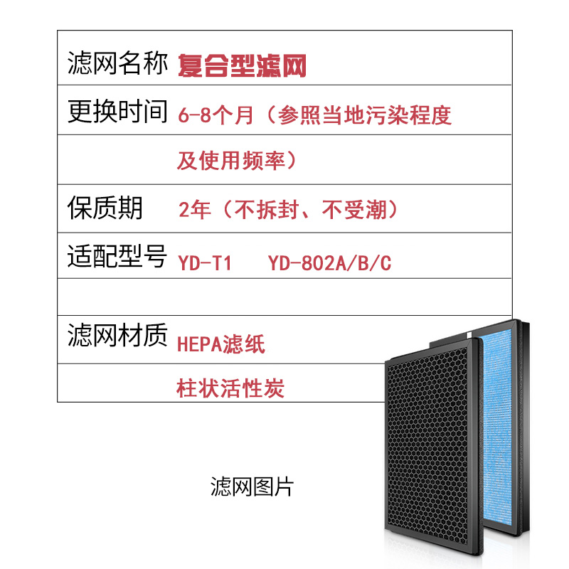 Suitable for Yangtze air purifier filter YD-T1 YD-802A B C household efficient composite filter accessories