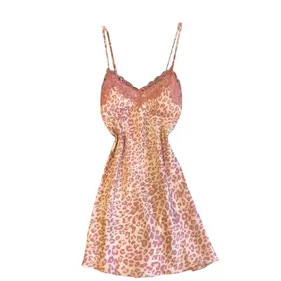 "LA" pink tender silk skin-friendly BAO WEN pajamas silk suspenders sexy lace skirt