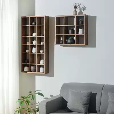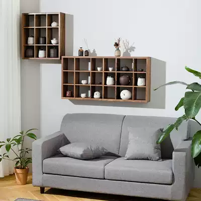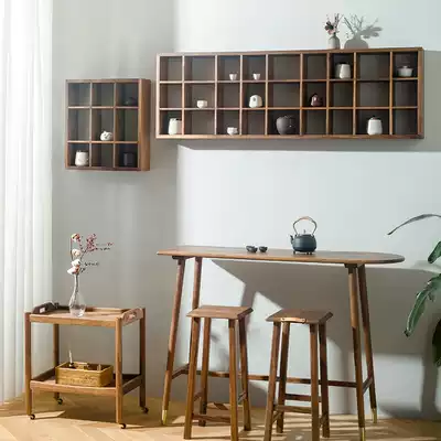 Black walnut wall compartment rack living room tea room simple tea set storage wall cabinet hanging cabinet wall cabinet