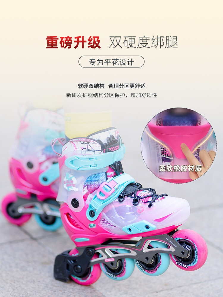 Rice High Children Wheel Skating Shoes Full Set Professional Flower Style Shoes Skate Figure Flat Flower Shoes Pulley Shoes Straight Row Wheels S7-Taobao
