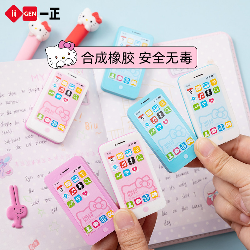 One positive rubber Hello creative children mobile phone shaped rubber cute square pupil rubber rub Kitty cat Colour less litter 2B eraser