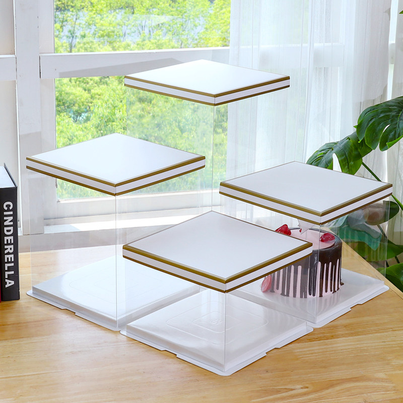 Full transparent birthday cake box packaging box 4 6 8 10 12 4-inch double layer plus high Barbie mesh red custom