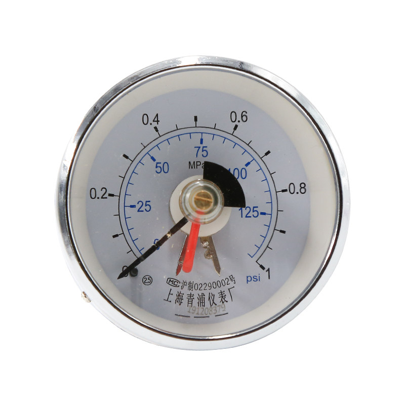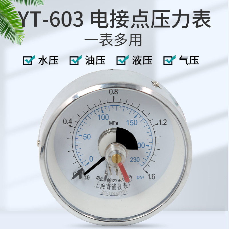 The YT-603 electric contact pressure gauge from Shanghai Qingpu Instrument Factory can be set with upper and lower limits