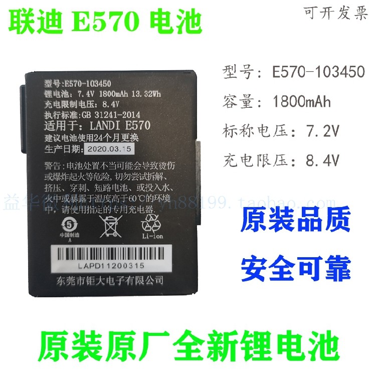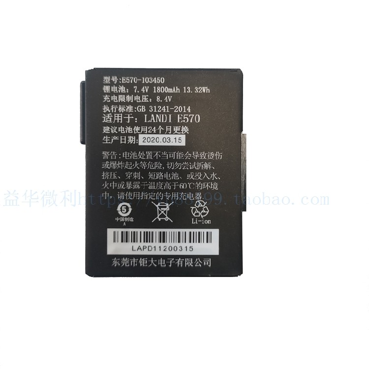 Lendi E570 Battery E570-103450 Landi Original Lithium Battery 1800mAh Juda Brand New Hot Sale