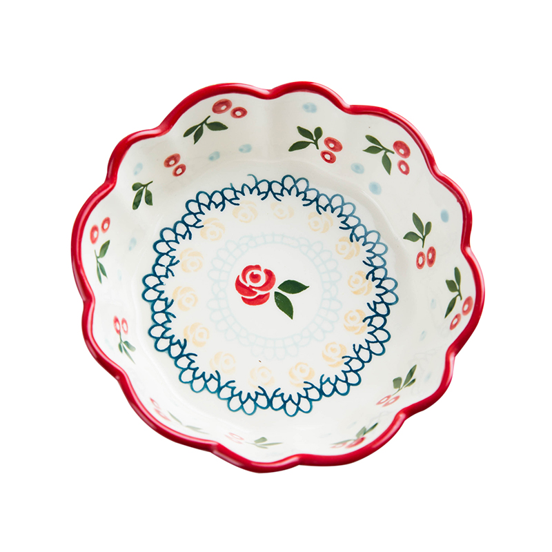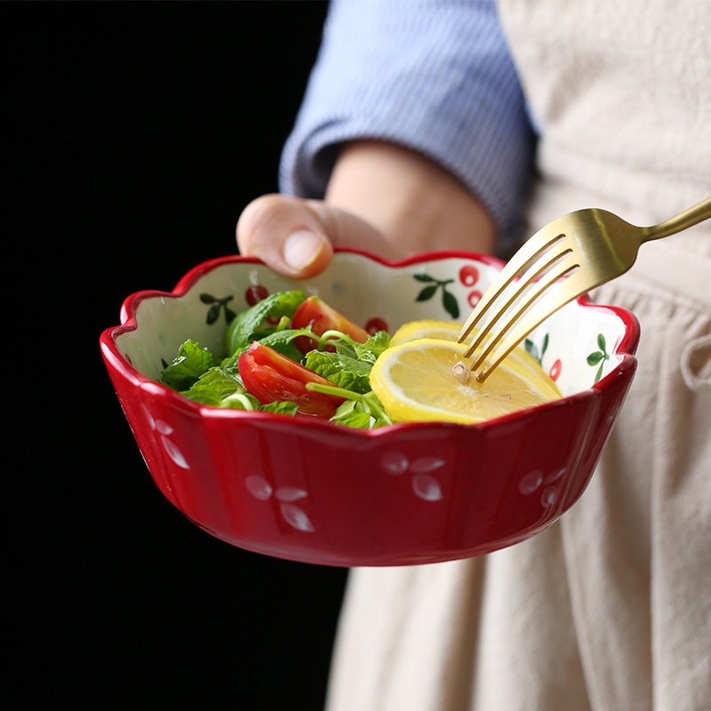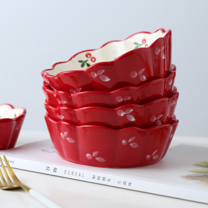 Xinjiang Japanese tableware ceramic fruit salad bowl ins cherry bowl net red roasted bowl with instant noodle bowl large roasting plate