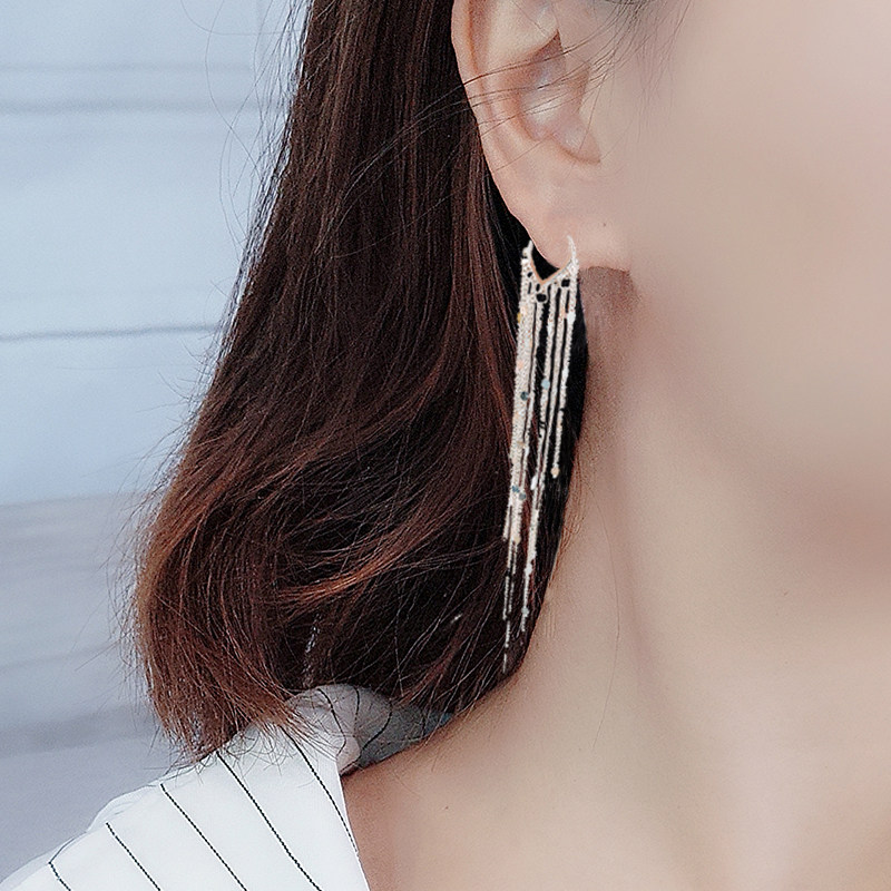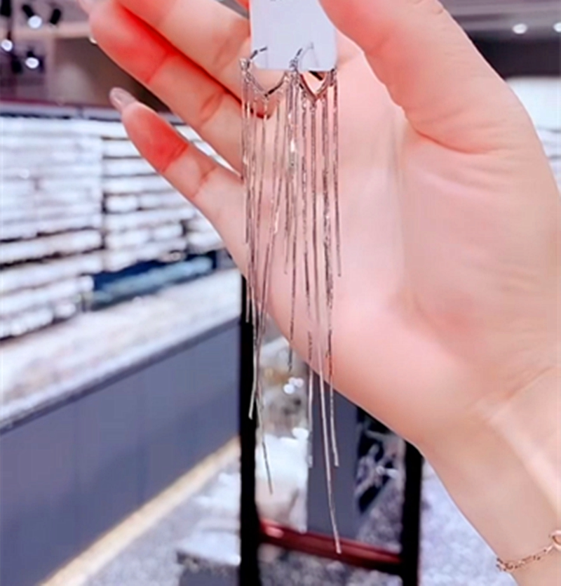 2020 new tide personality simple stream of the Han Edition 925 silver needle super fairy and thin love earring