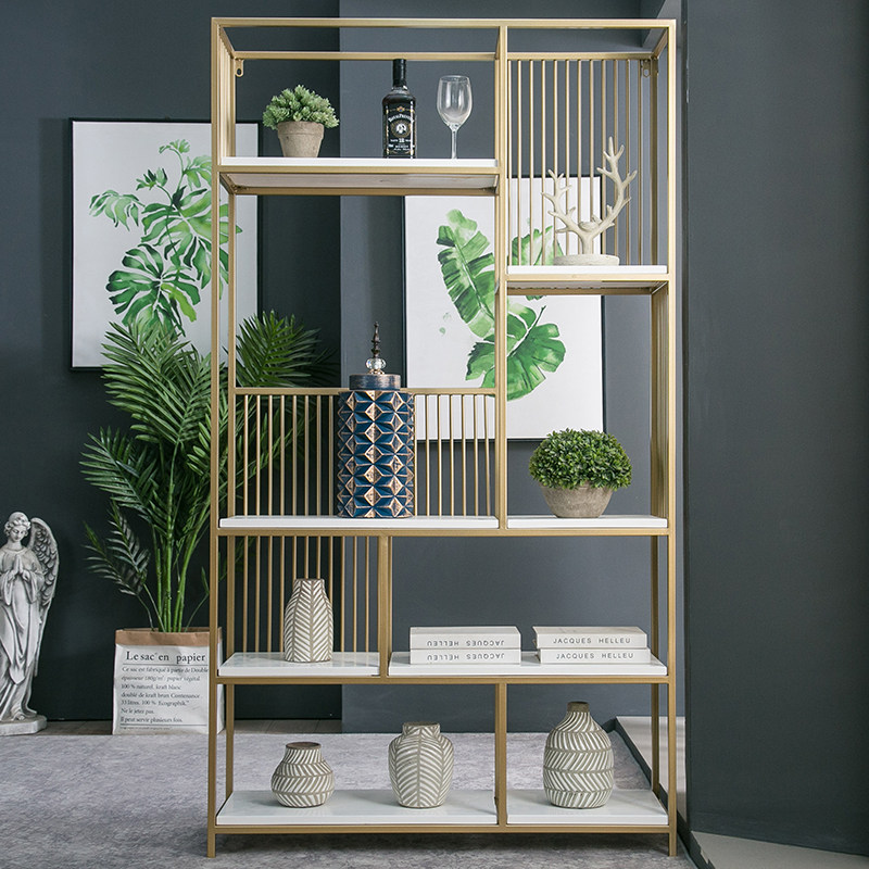 Golden light luxury screen partition standard Nordic modern living room mask shelf iron frame landing display frame customized