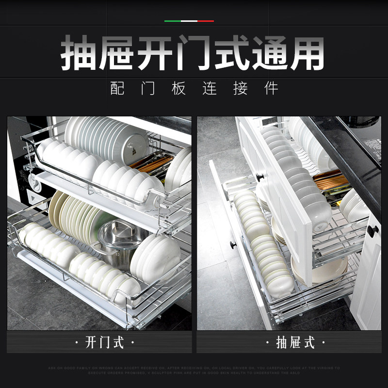 Bold 35 37 Shallow depth shallow cabinet Cabinet pull basket 304 stainless steel kitchen drawer dish basket damping track