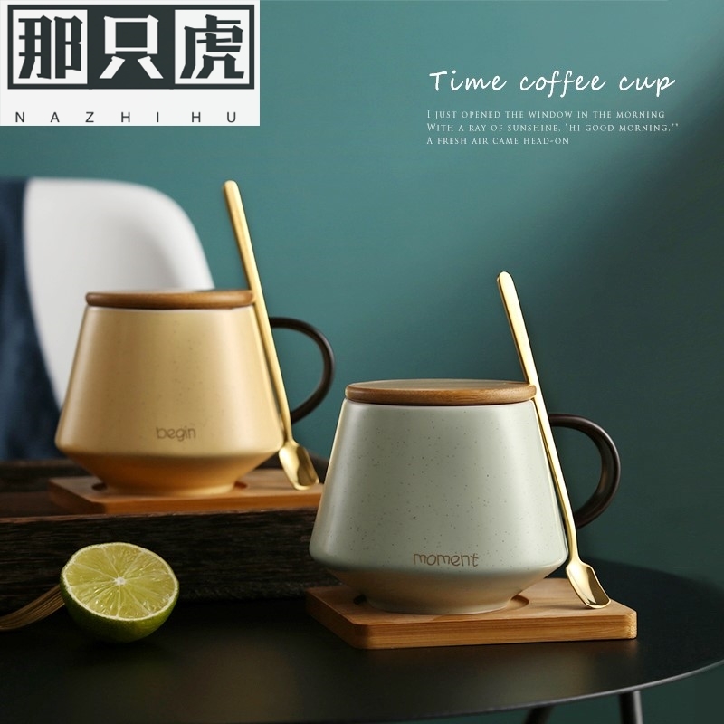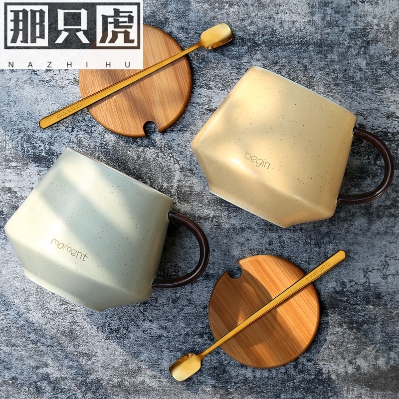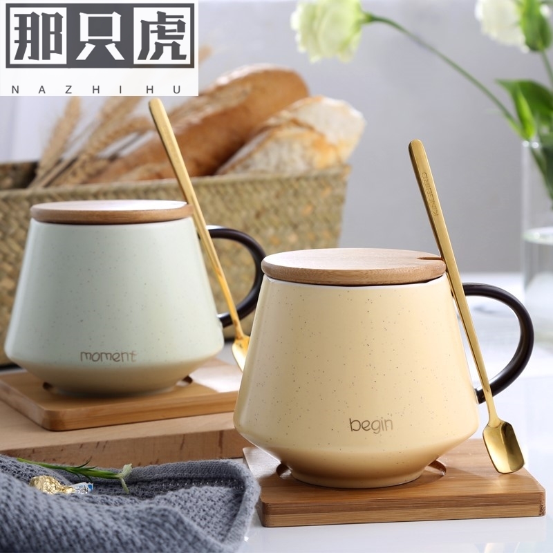 INS Nordic coffee cup breakfast cup ceramic with lid spoon mug large capacity female water cup home office