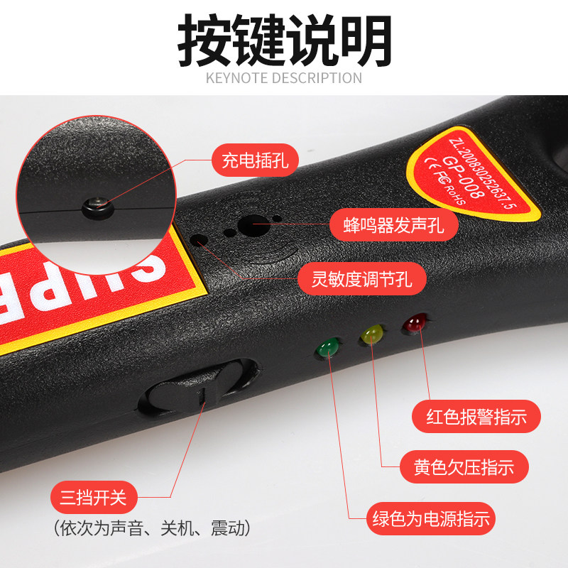 Handheld metal detection instrument small high sensitivity security scanner mobile wood probe school examination field food