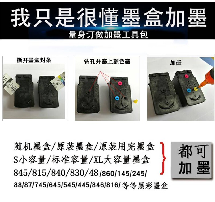 S Canon ink cartridge punching tool modified ink dispenser with continuous spray hollow plug suction clip filling ink