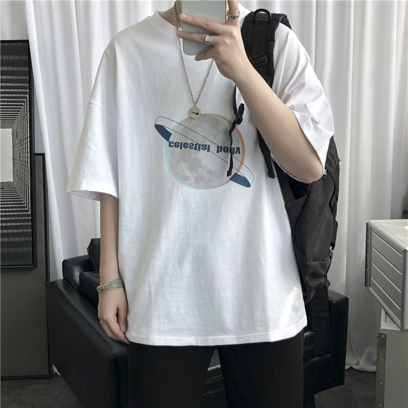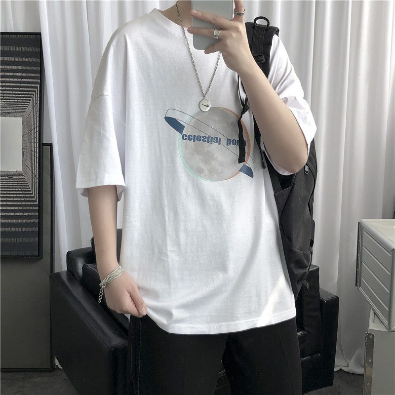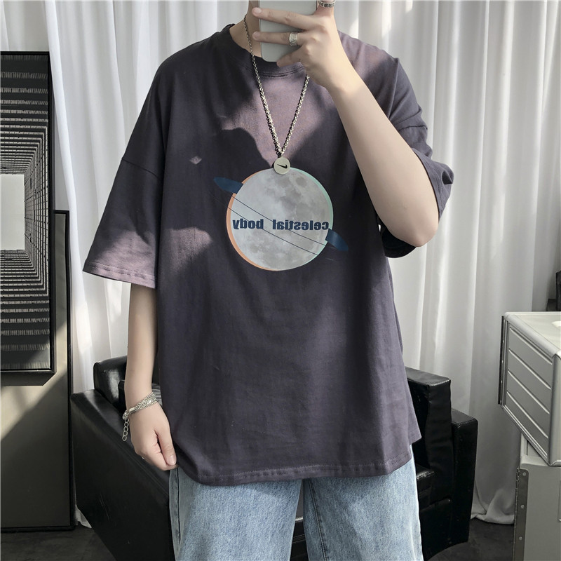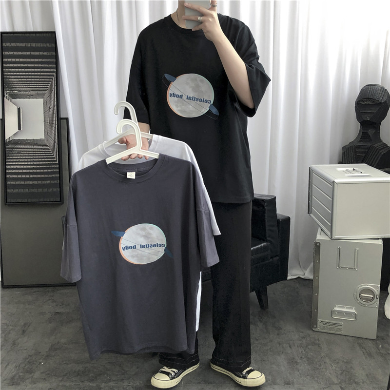 Summer new short sleeves T-shirt male Korean version Trend ins surges Fire Tide Card Planet Printed Half Sleeve Port Wind Loose Clothing