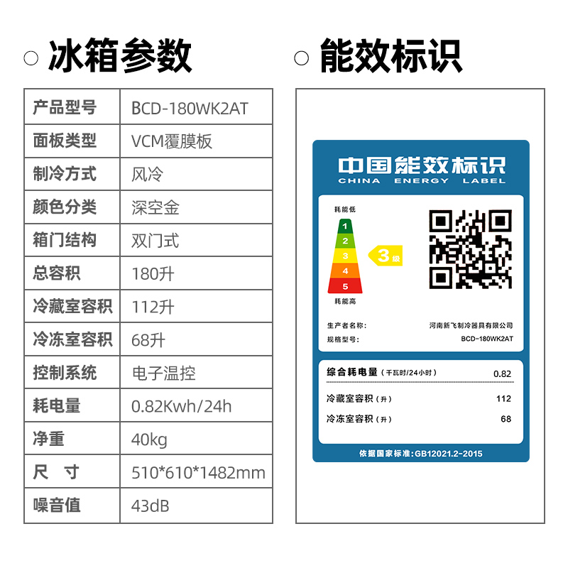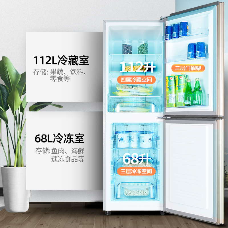 Xinfei BCD-180 air-cooled frost-free double-door refrigerator small household energy-saving refrigeration two-door refrigerator