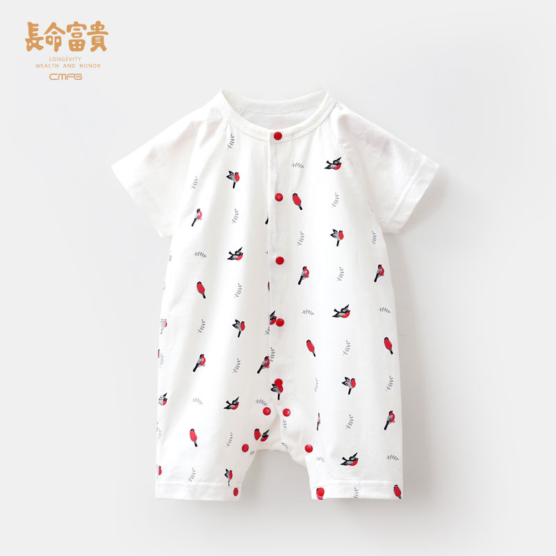 Long life rich and expensive baby clothes newborn Chinese wind red male and female baby even body clothes for summer clothing short sleeves