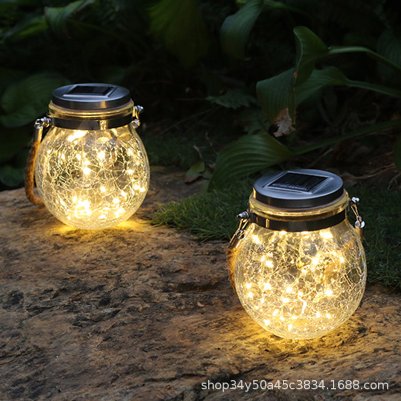 Solar Night Light Outdoor Waterproof Garden Light Garden Lawn Balcony Decorative Crack Glass Bottle Hanging Tree Light