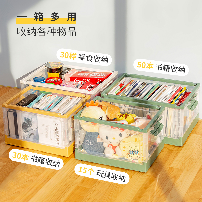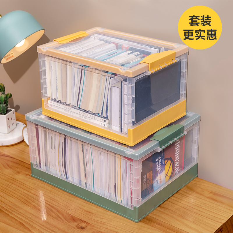 Folding book containing box containing book plastic case finishing box Large capacity transparent with wheels Dormitory Release box