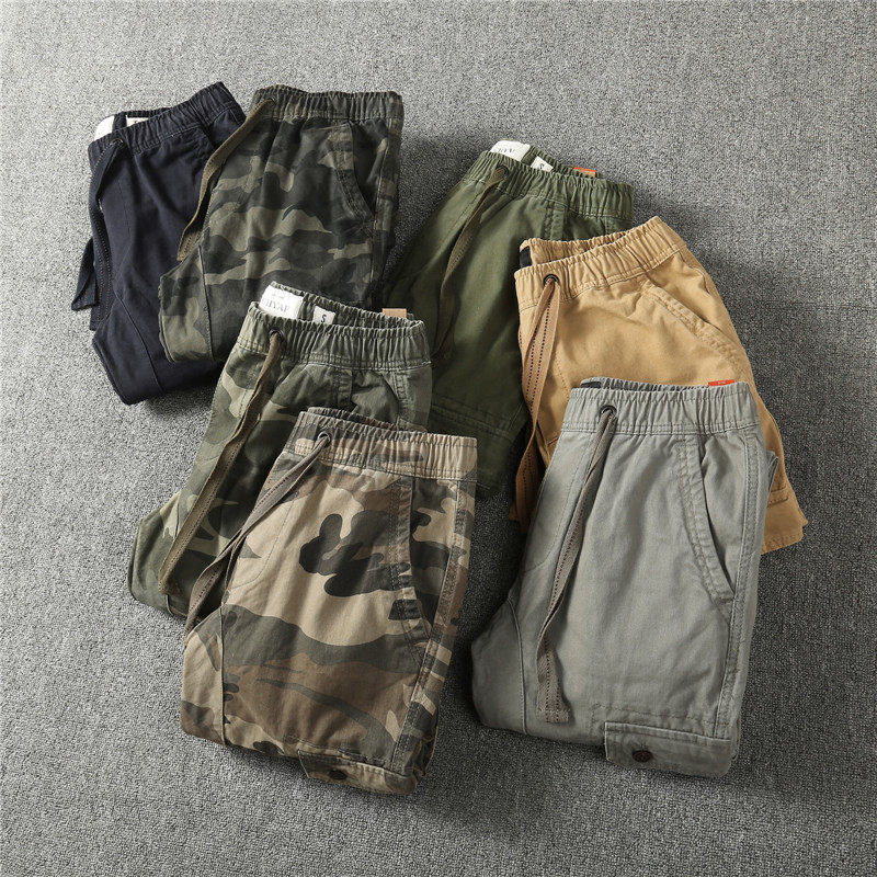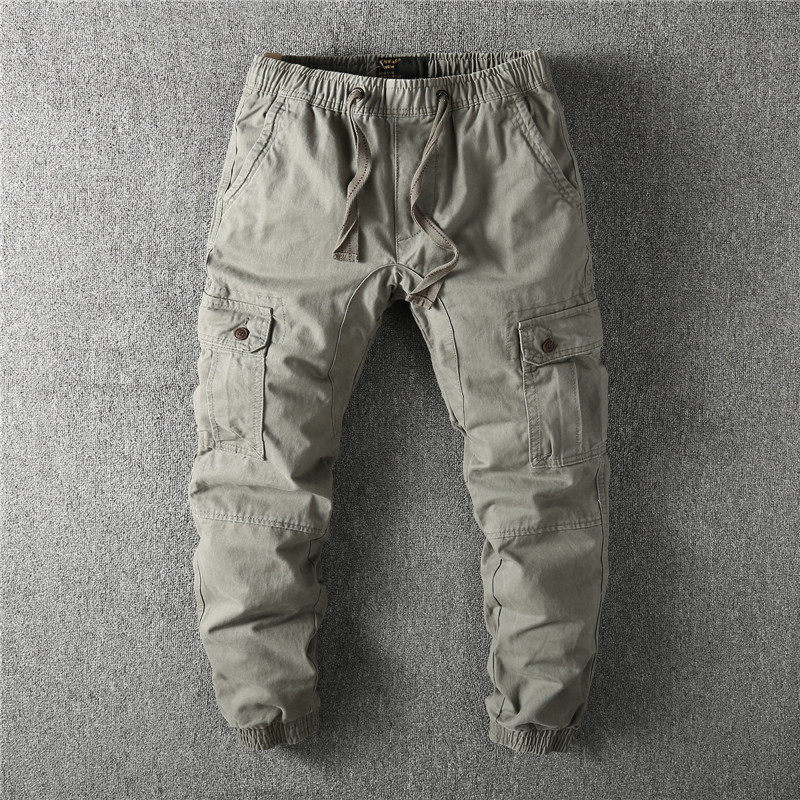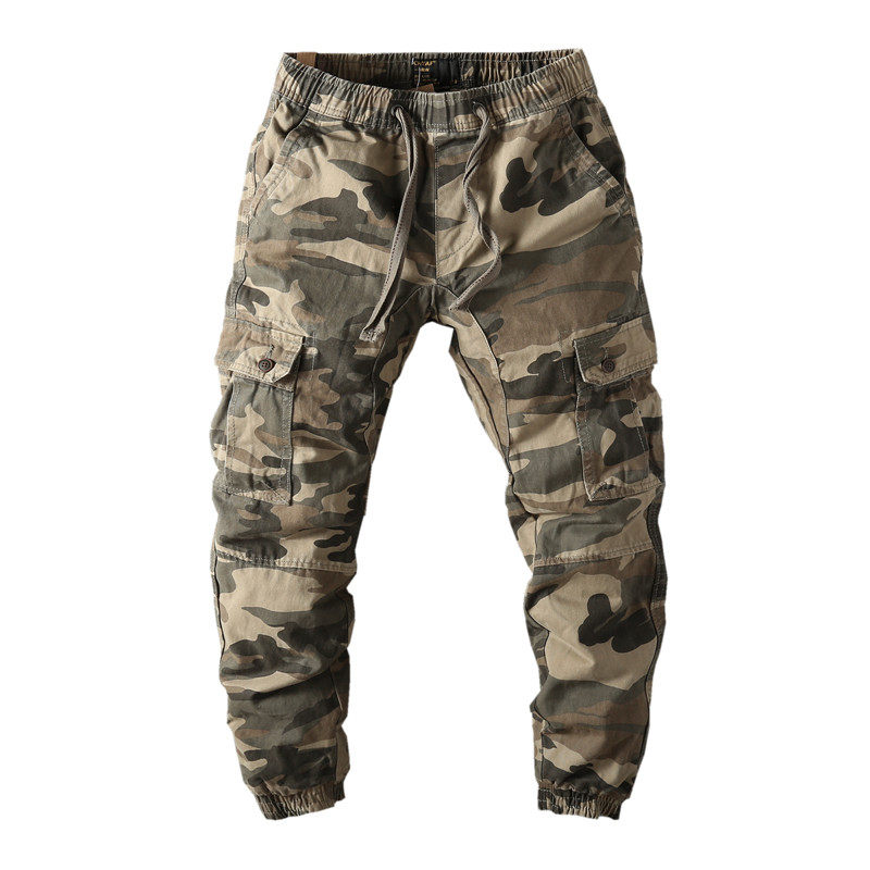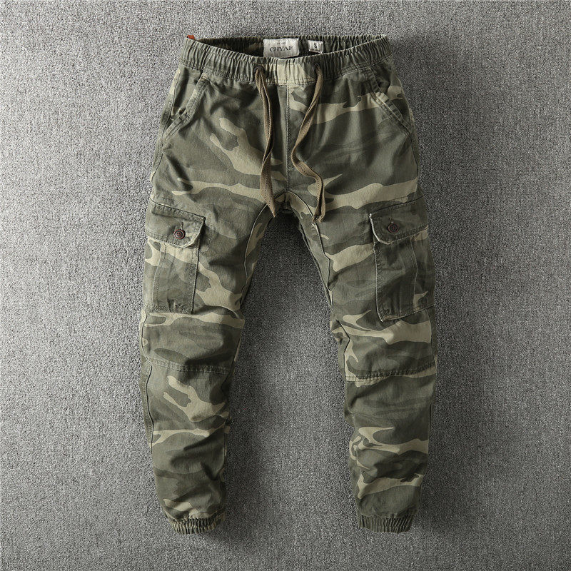 European and American retro men's slim multi-pocket cargo camouflage casual trousers Autumn and winter cotton thick jogging bottoms