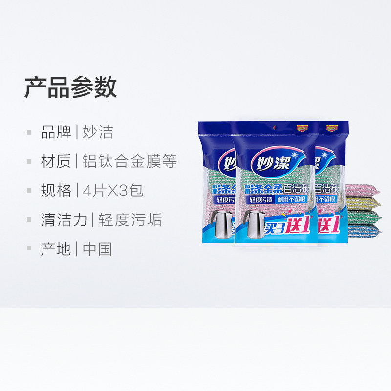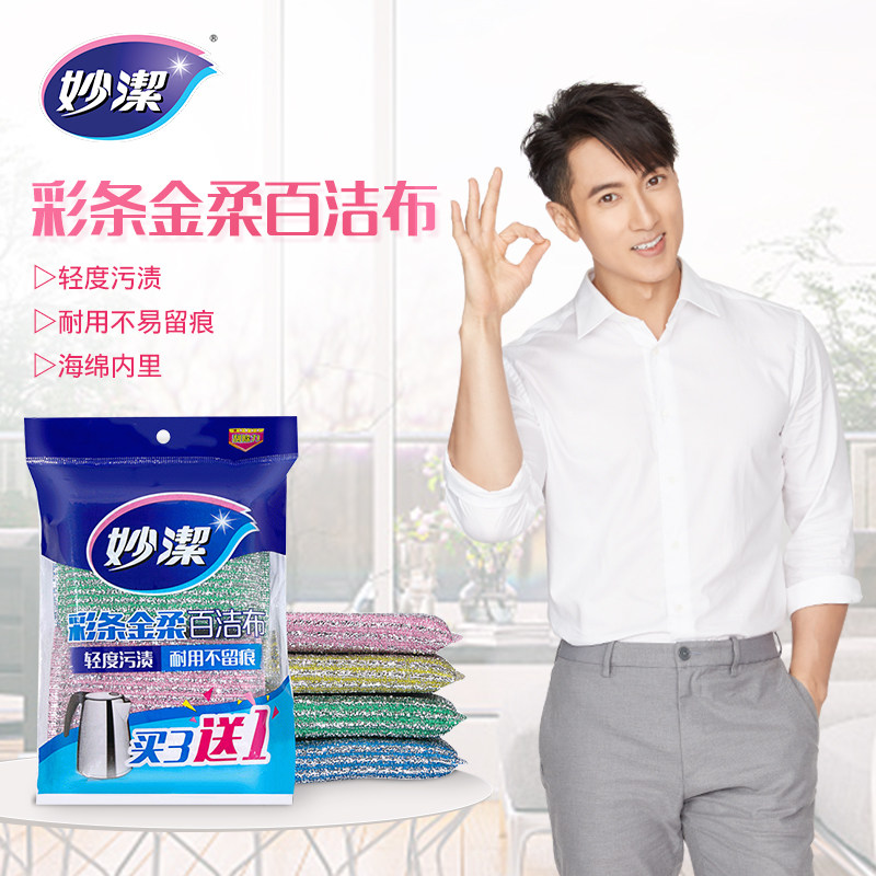 Miaojie color strip golden soft sponge 100 clean cloth kitchen to remove oil stains cleaning household dishwashing wipe 4 tablets × 3 packs