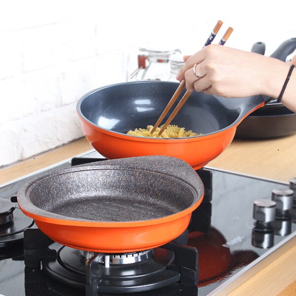 Han-style induction cookery Korea Eat Sow with original assembly aluart without dipping into the pan orange red boiled noodles frying pan-bottom pan
