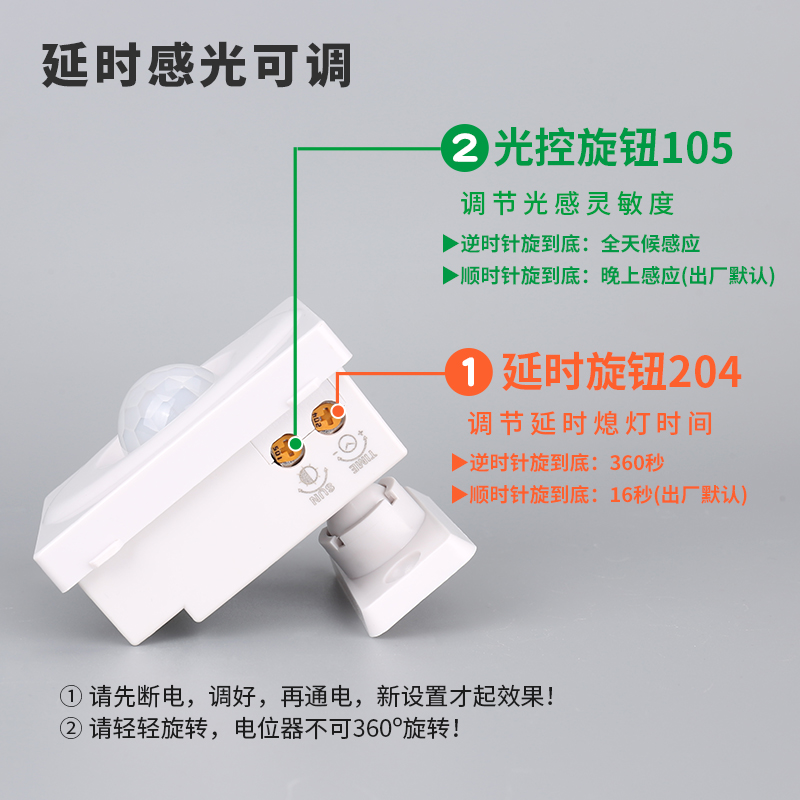 220V infrared human inductive switch intelligent sensing direction adjustable energy-saving lamp LED light controllable sensor