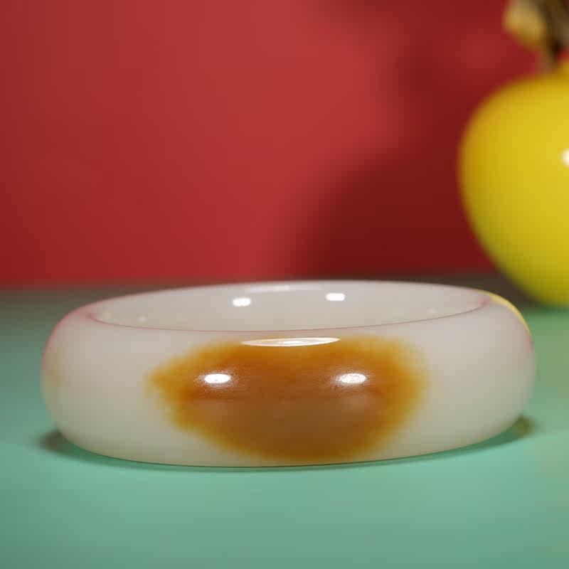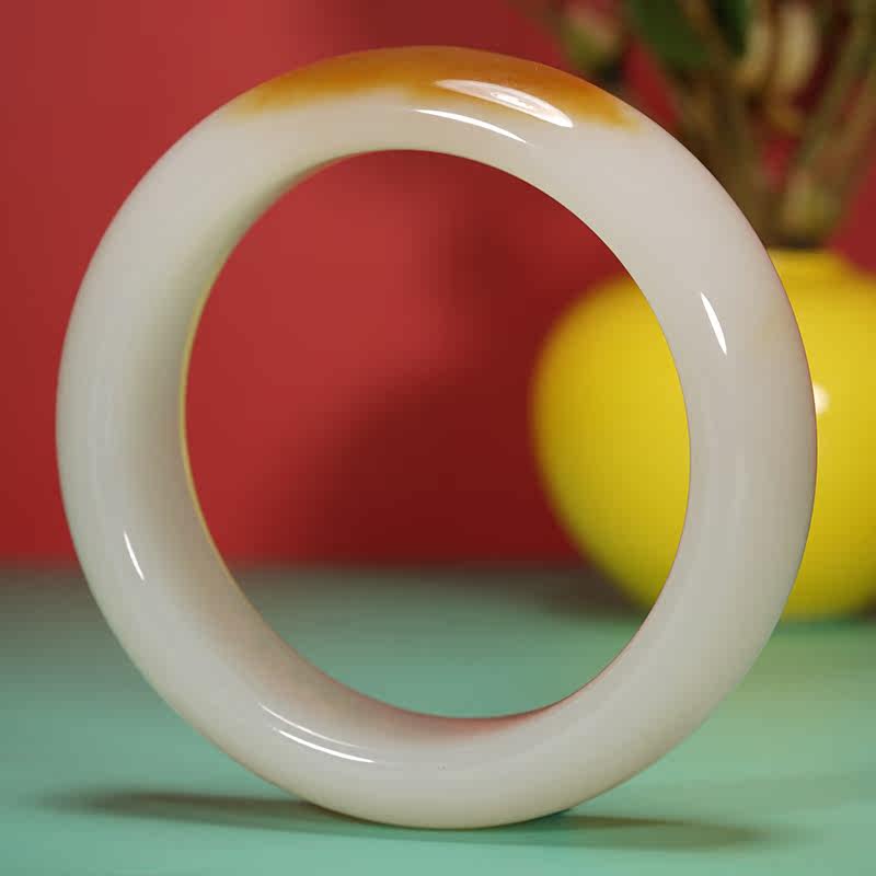 Double height jade and field jade bracelet female section Xinjiang and weekend sugar white positive round jade bracelet natural jade wide strip bracelet