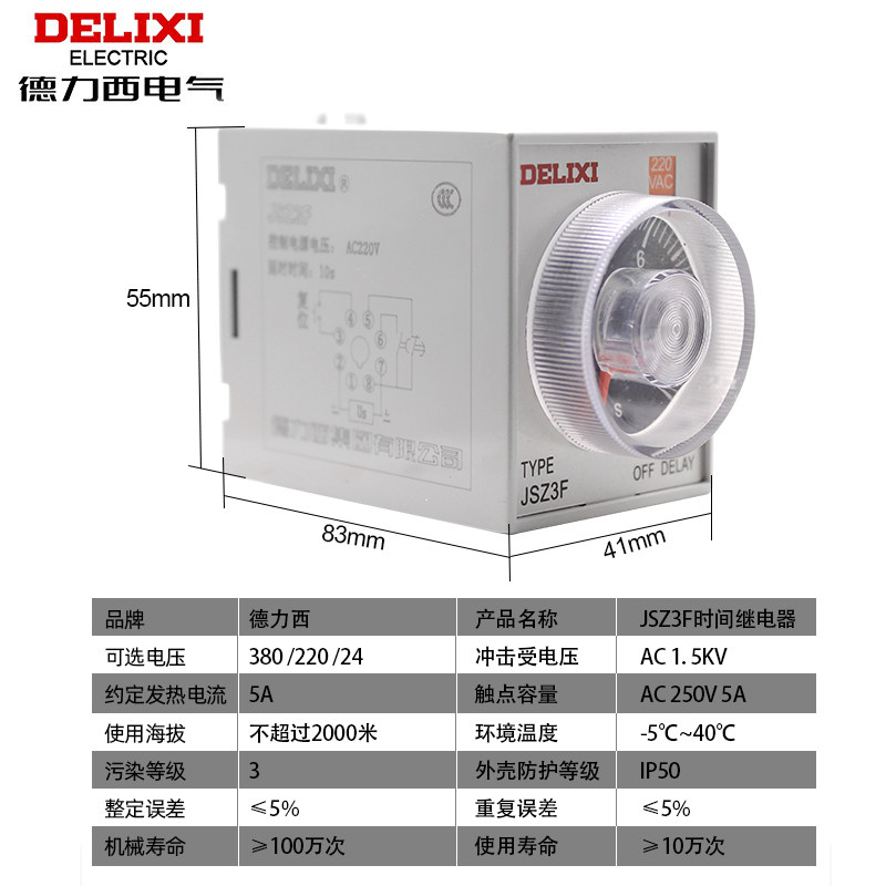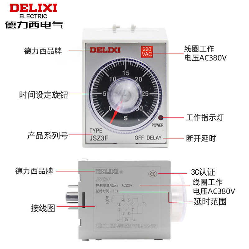 Delixi power-off delay time relay JSZ3F 10S 30S 60S 10M 30M 220V