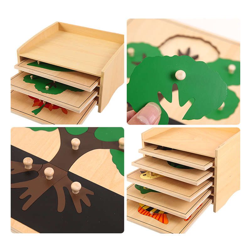 Monshi Teaching Aids Animal And Plant Jigsaw Puzzle Insert Whole Cabinet Kindergarten Enlightenment Early Education Puzzle Toy Solid Puzzle Wooden