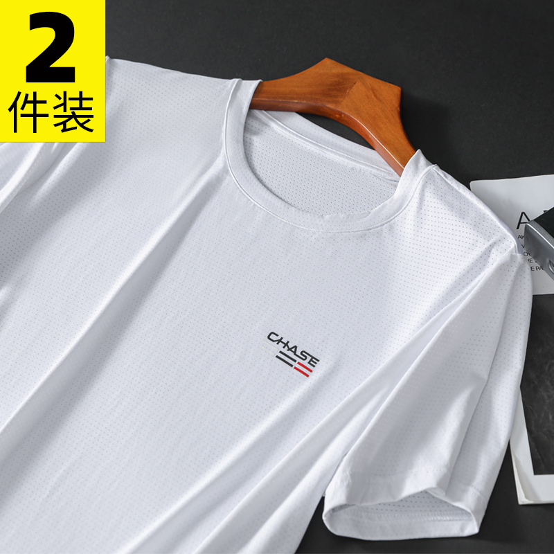 Mint ice silk short-sleeved quick-drying T-shirt men's summer trend tide brand leisure sports running mesh slippery breathable top