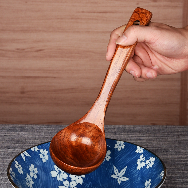 Sun-style large wood-filled soup spoon Home Long handle wood Sheng porridge spoon Porridge Wood Spoon Wooden Solid Wood Large Soup Spoon