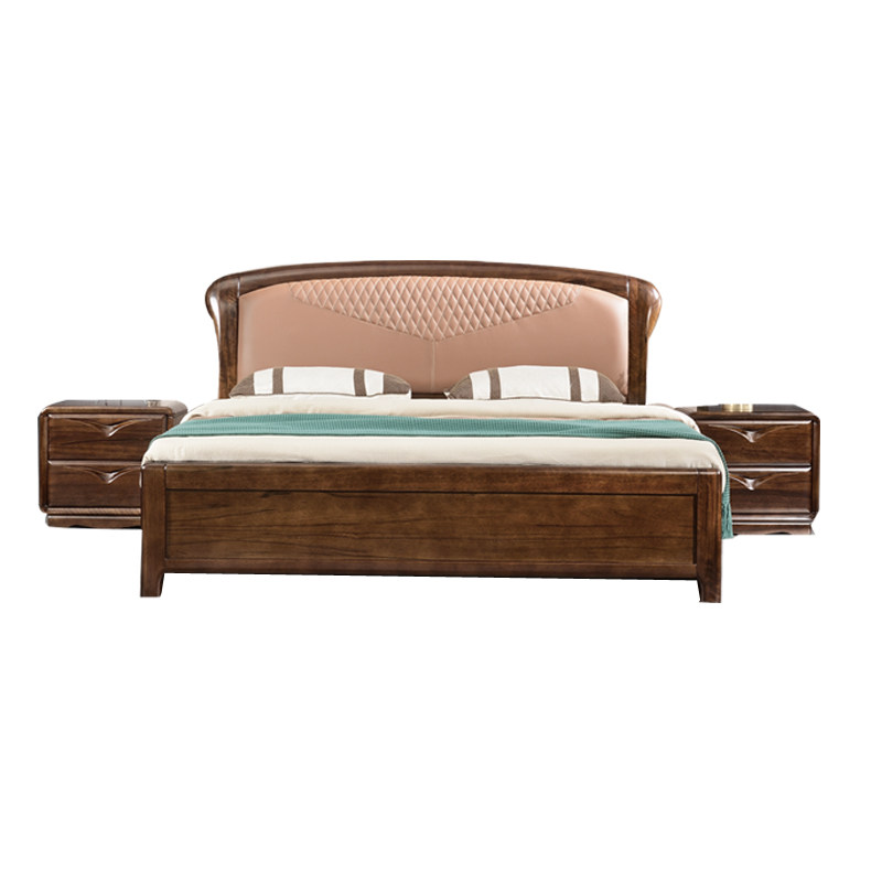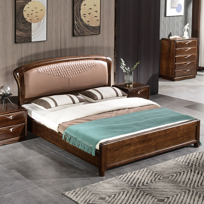 New Chinese style black walnut solid wood double bed high box with drawer storage modern minimalist master bedroom storage soft package wedding bed - Taobao