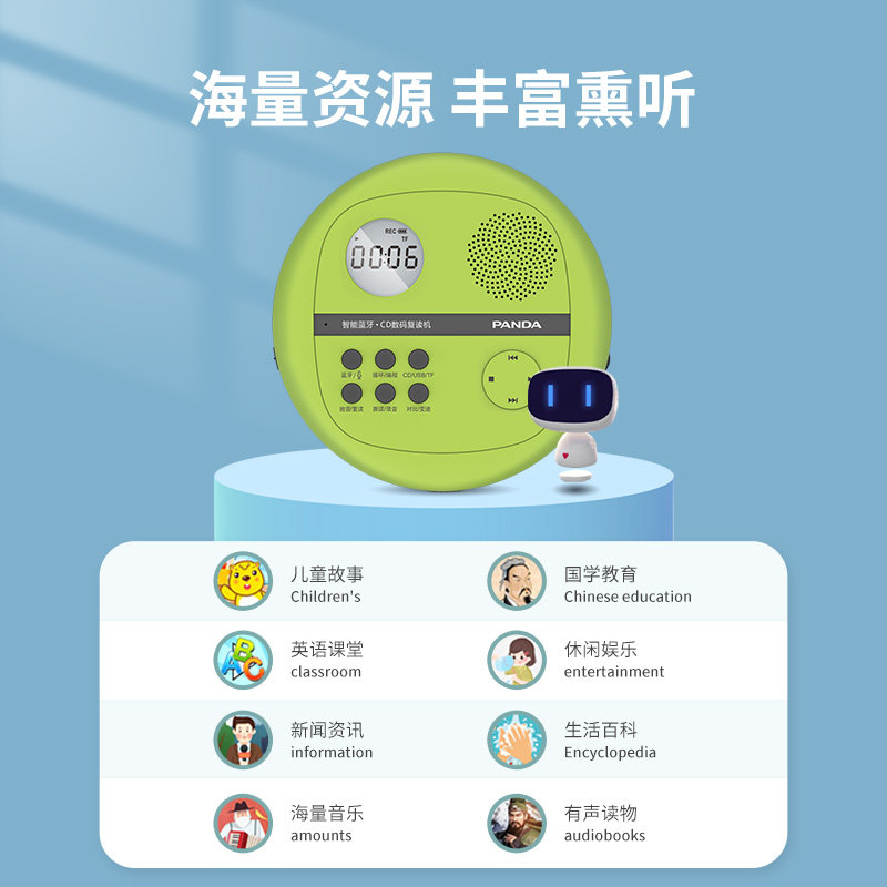 Panda F-05 Built-in small degree CD player repeater player Portable charging plug-in machine Home Bluetooth student learning English Walkman CD disc disc can play discs Primary school Junior High School