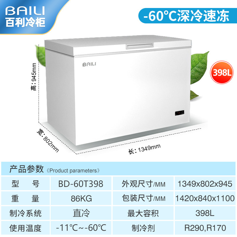 Baili freezer Commercial large capacity horizontal low temperature freezer Seafood frozen freezer Tea refrigerated fresh refrigerator