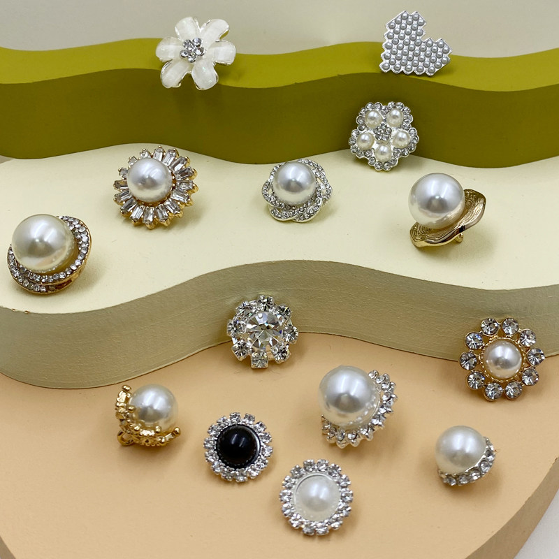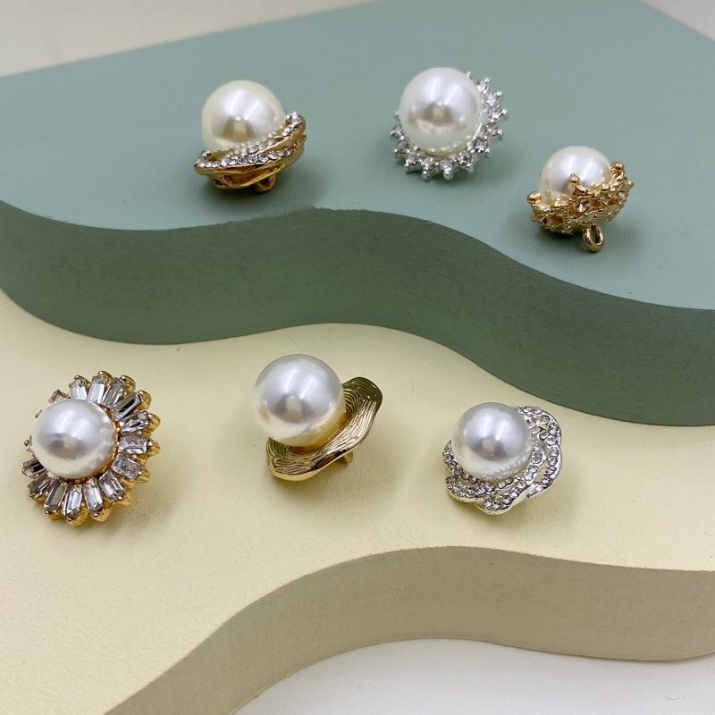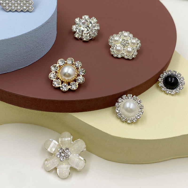 Spherical Shaped Pearl Button with water drill Small fragrant wind buttons Decorative Skirts Foreign Clothing Blouse Women's Daughter Water Drill