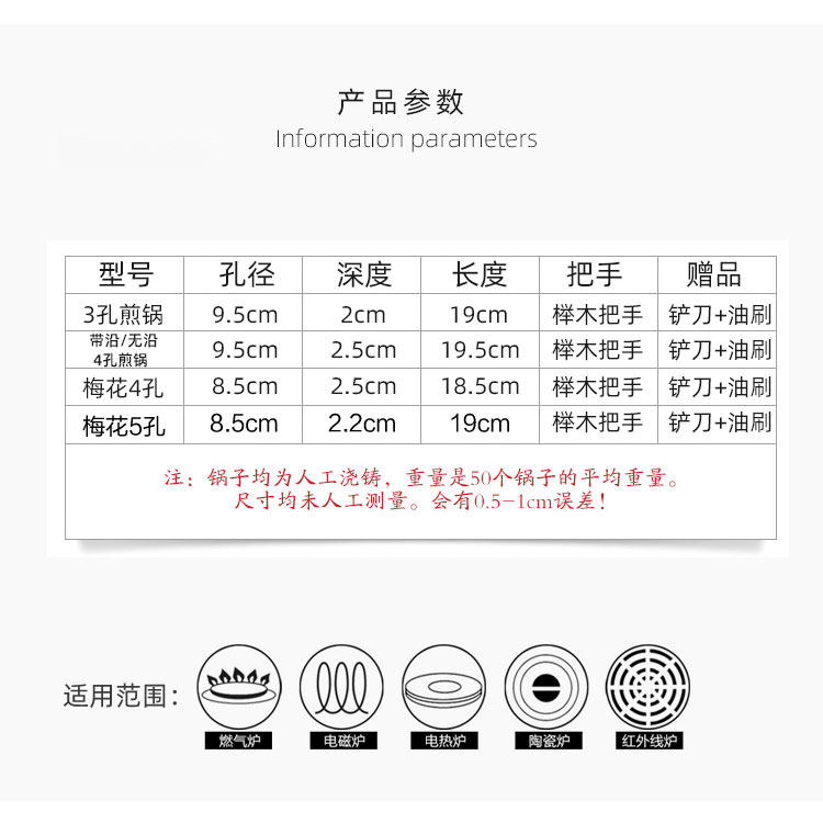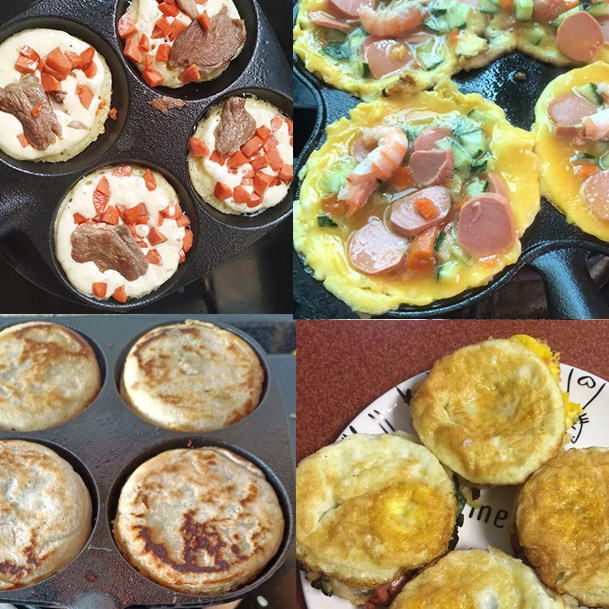 3-hole frying pan without 4-hole frying pan with 4-hole frying pan plum 4 holes frying pan with side handle 4 holes frying pan plum blossom 5-hole frying pan
