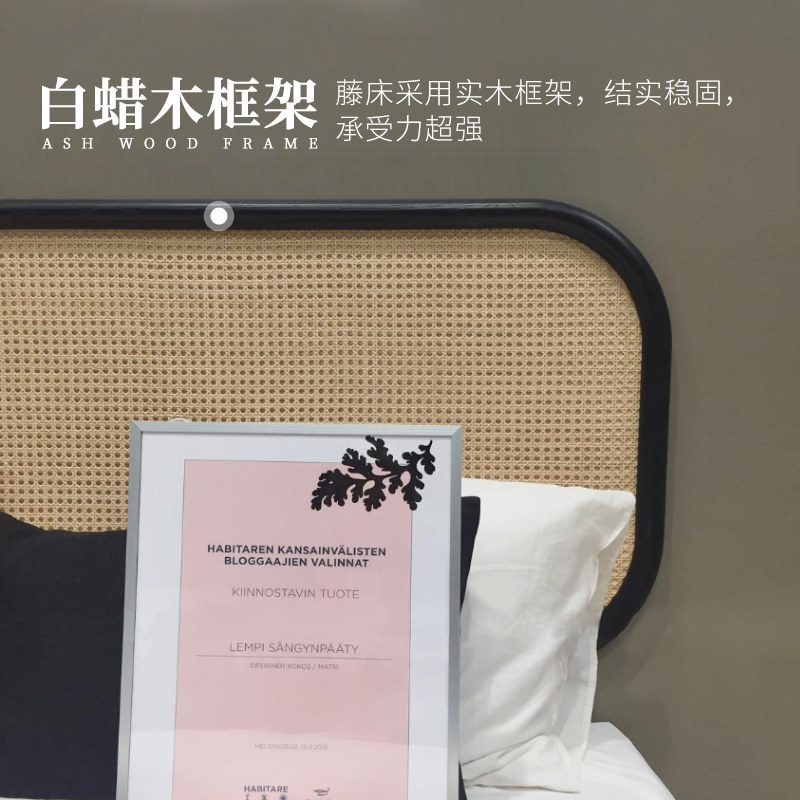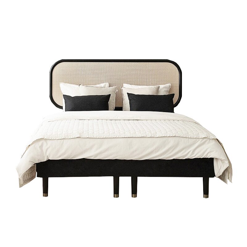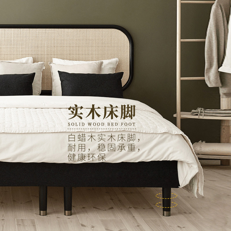 Nordic natural rattan double bed bed and breakfast Modern simple rattan woven bed creative household bedroom solid wood bed 1 8 meters