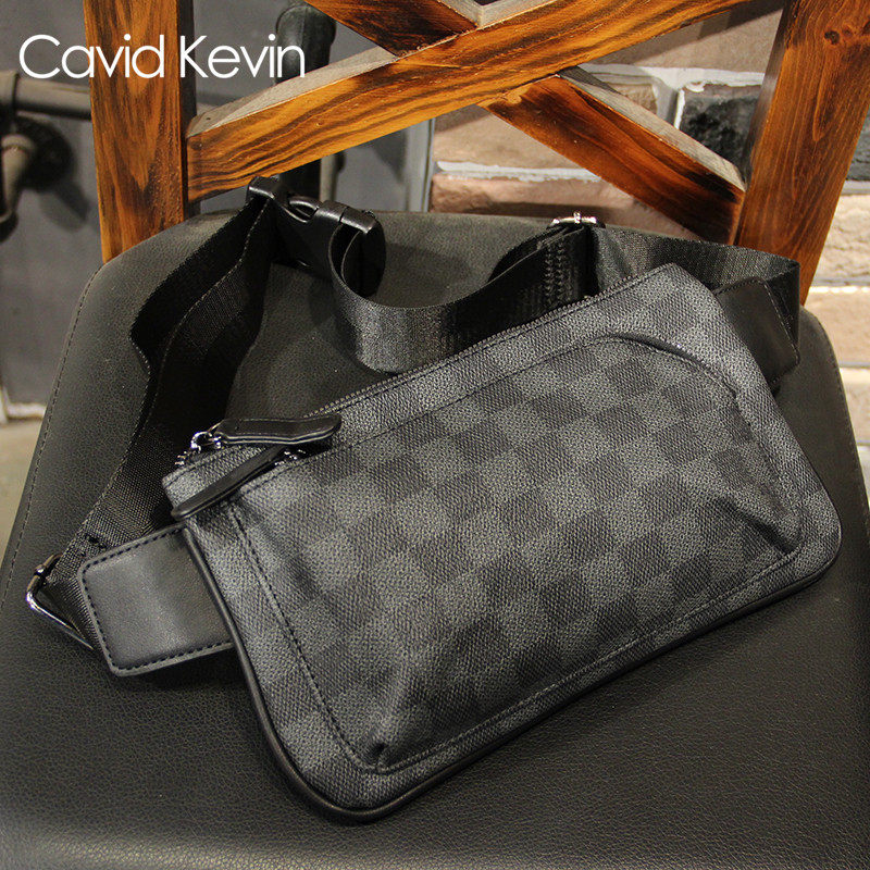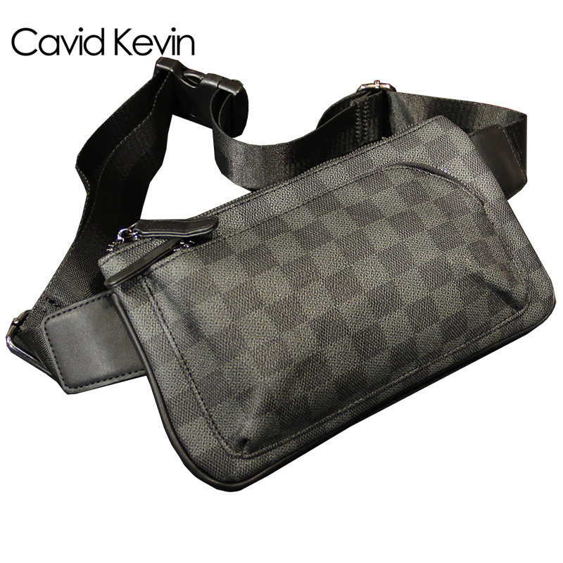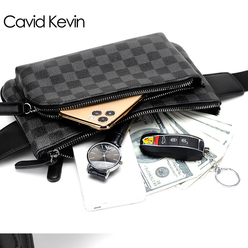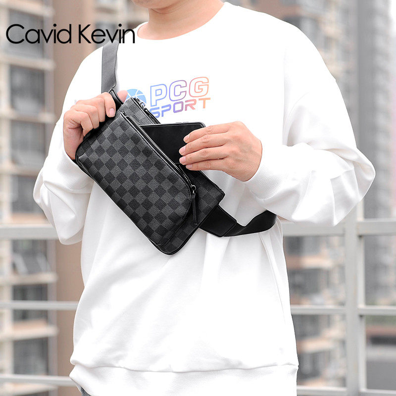 Cavid Kevin European and American Plaid Men's Chest Bag Waist Bag Versatile Messenger Bag Leather Business Texture Shoulder Bag