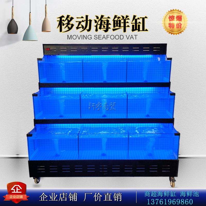 Hotel fish tank supermarket hotel glass seafood pool refrigerator integrated commercial three-layer custom mobile seafood fish tank