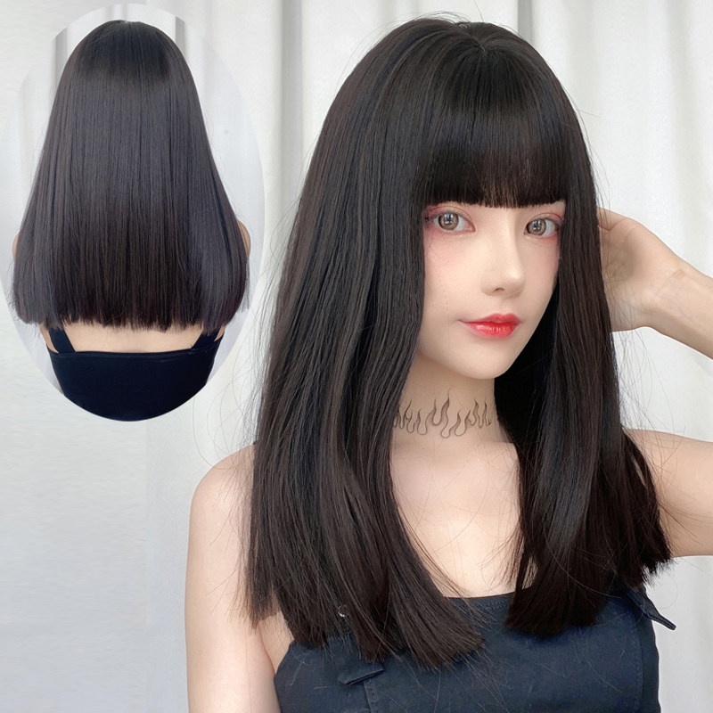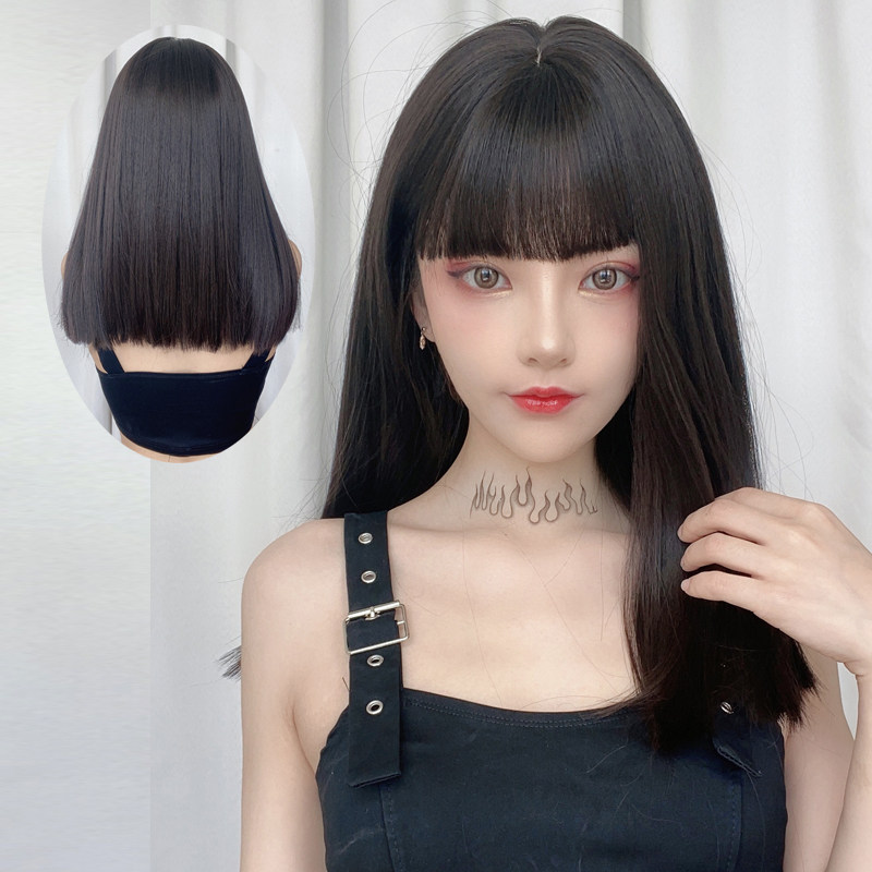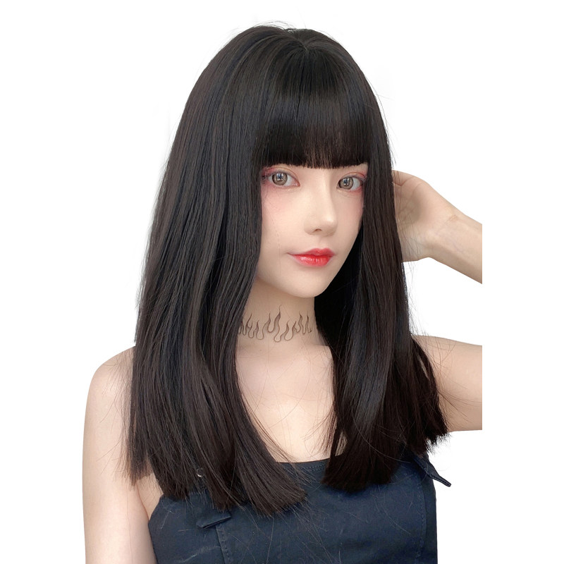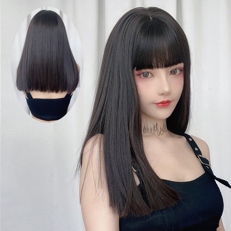 Wig woman lisa comic bangs long hair one-size-fits-all bangs medium long hair Net red black long straight hair full head cover