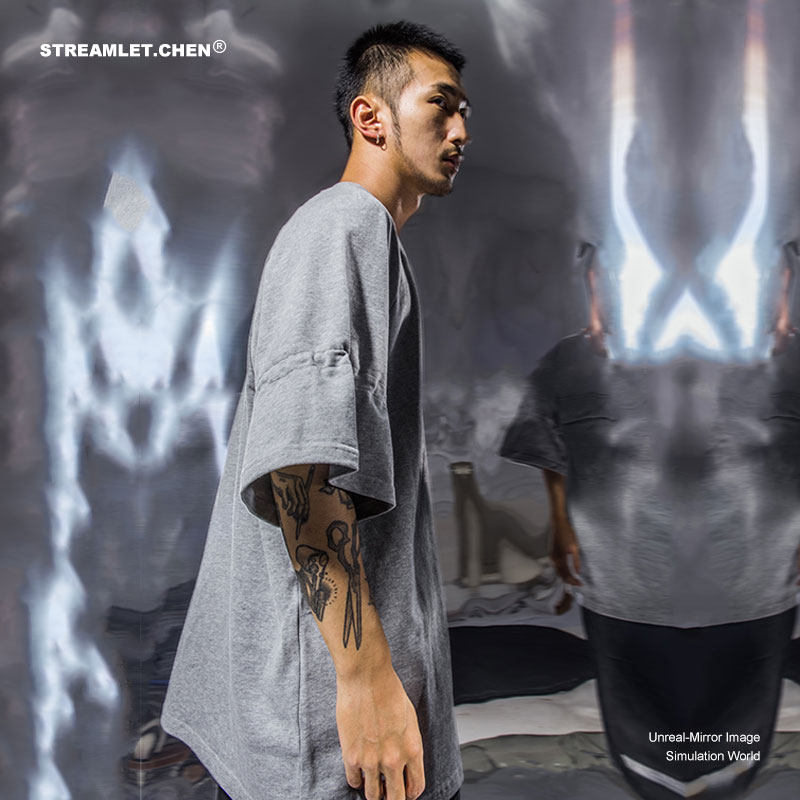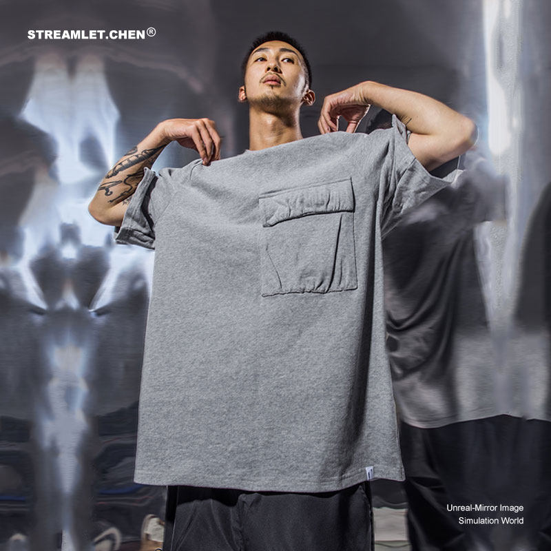 (Chaowoo exclusive) STREAMLET CHEN: Bent Knife Pleats Design 270G Double Yarn Soft Cotton Short Sleeve T-shirt