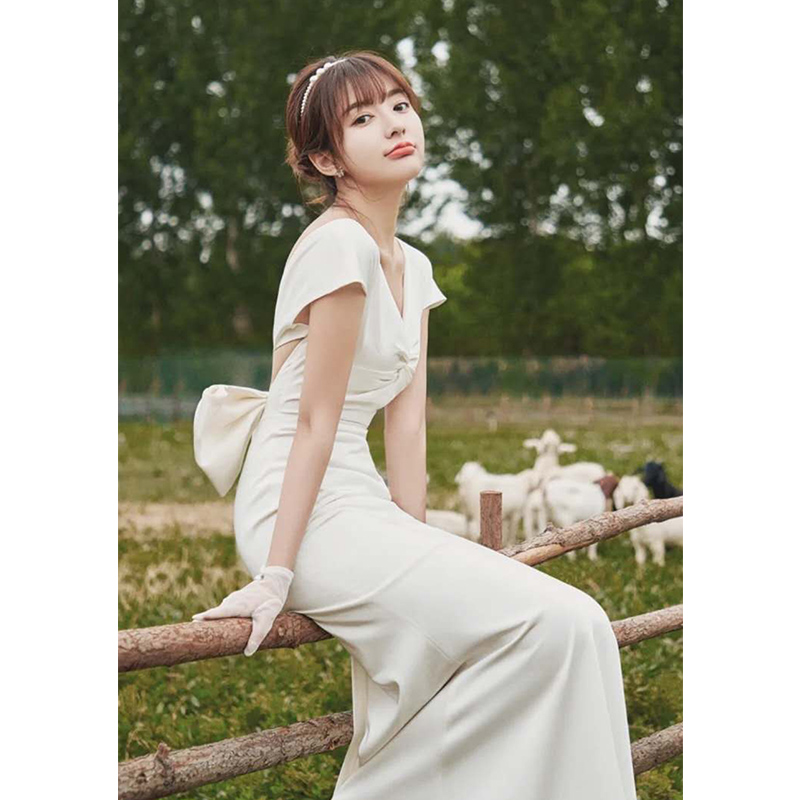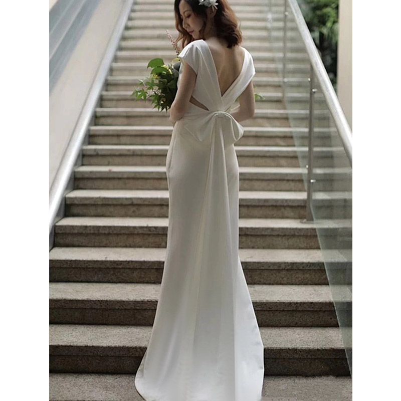 French Light Wedding Dress 2022 New Simple Renaissance Bride Married Out Satin - faced Evening Dress Woman