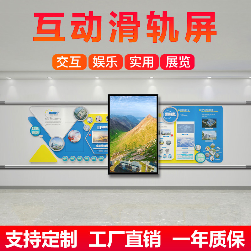 Exhibition hall interactive slide screen Touch query display Manual electric push-pull track screen Smart exhibition hall Follow people to move the guide screen open and close the screen customization