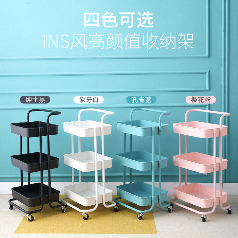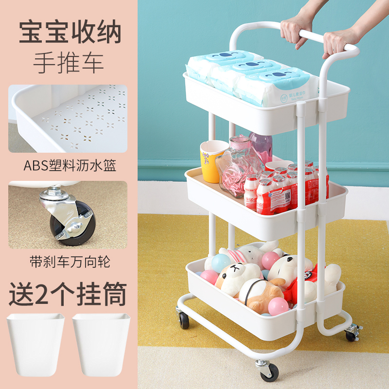 Multi-layer baby product rack small cart kitchen rack pulley movable toy storage layer rack small basket