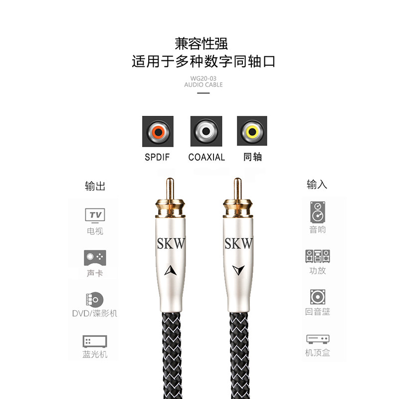 SKW Fever Coaxial Audio Line Digital SPDIF TV 5 1 Channel Power Amplifier Sound Low Sound Cannon Connection 6N