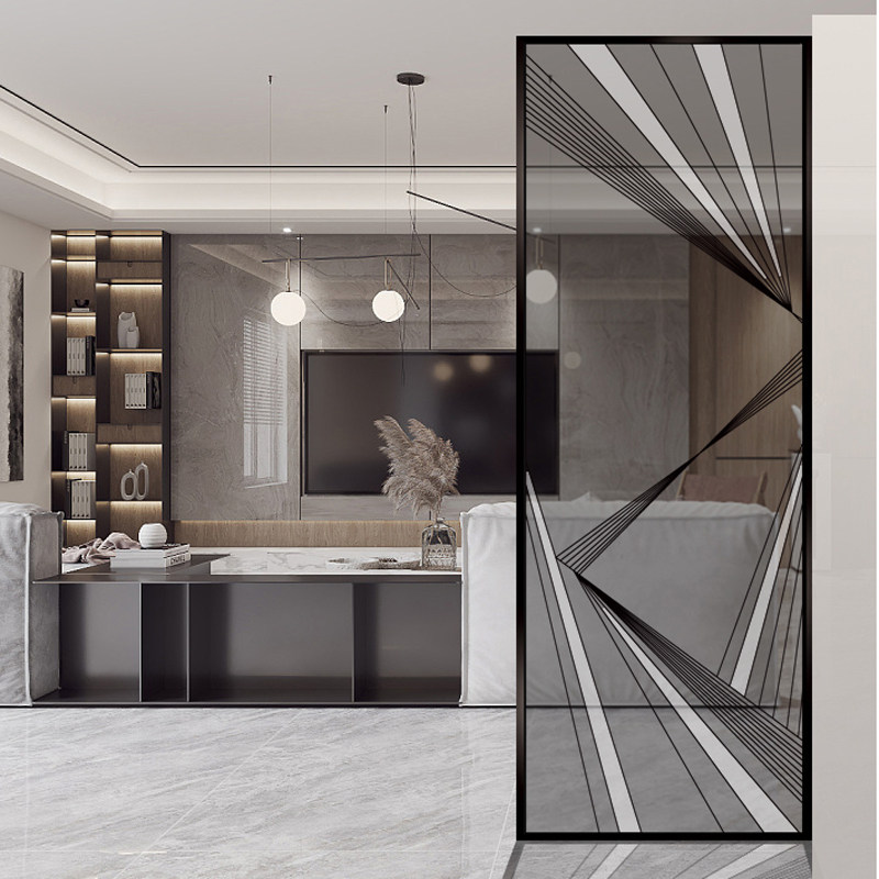 Art Glass Screen Partition Custom Modern Furniture Living Room Decoration Genguan Background Wall Frosted Light Transmission Process