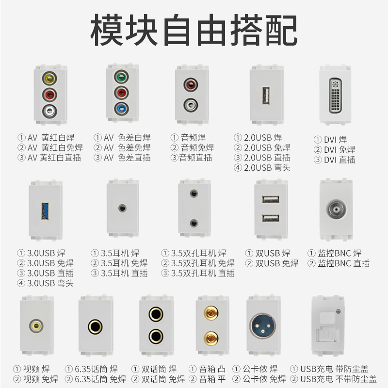 Five holes 10A (stainless steel) Five holes double computer (stainless steel) Two holes 16A Three holes (stainless steel) Five-hole telephone (stainless steel) Five holes Electric