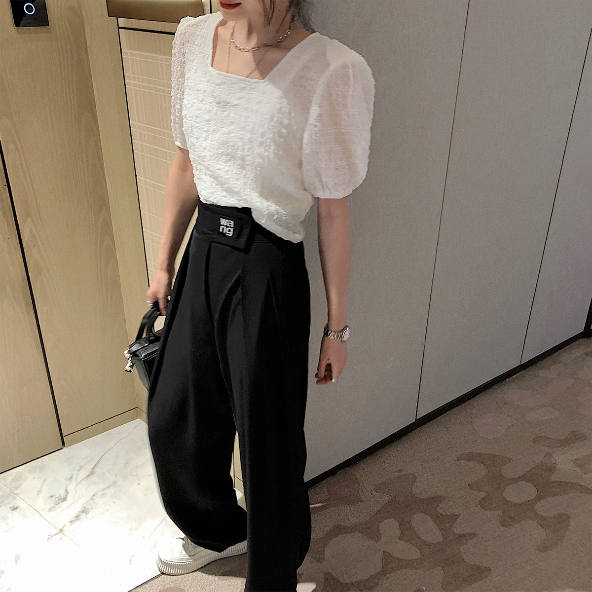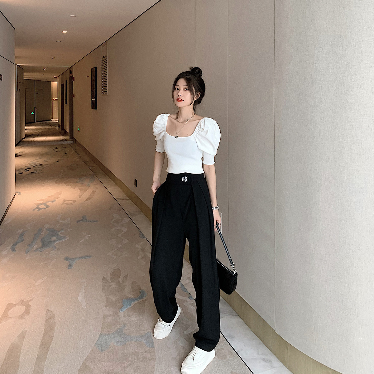 The new spring/summer 2021 thin high-waisted wide-leg pants with drape feel