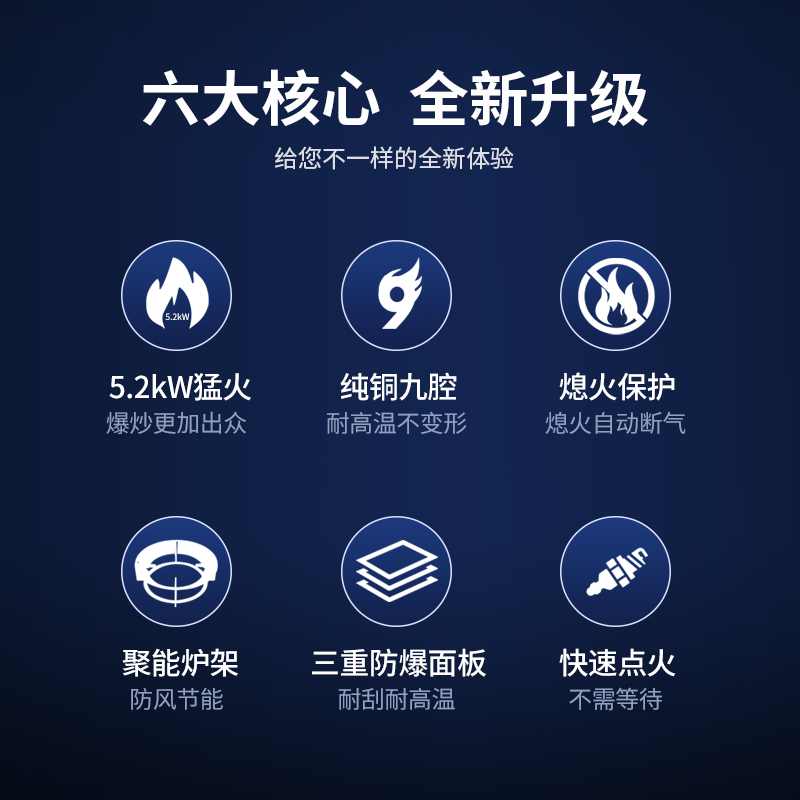 Enjoy nine-cavity tempered glass copper fire cover (three-piece valve set