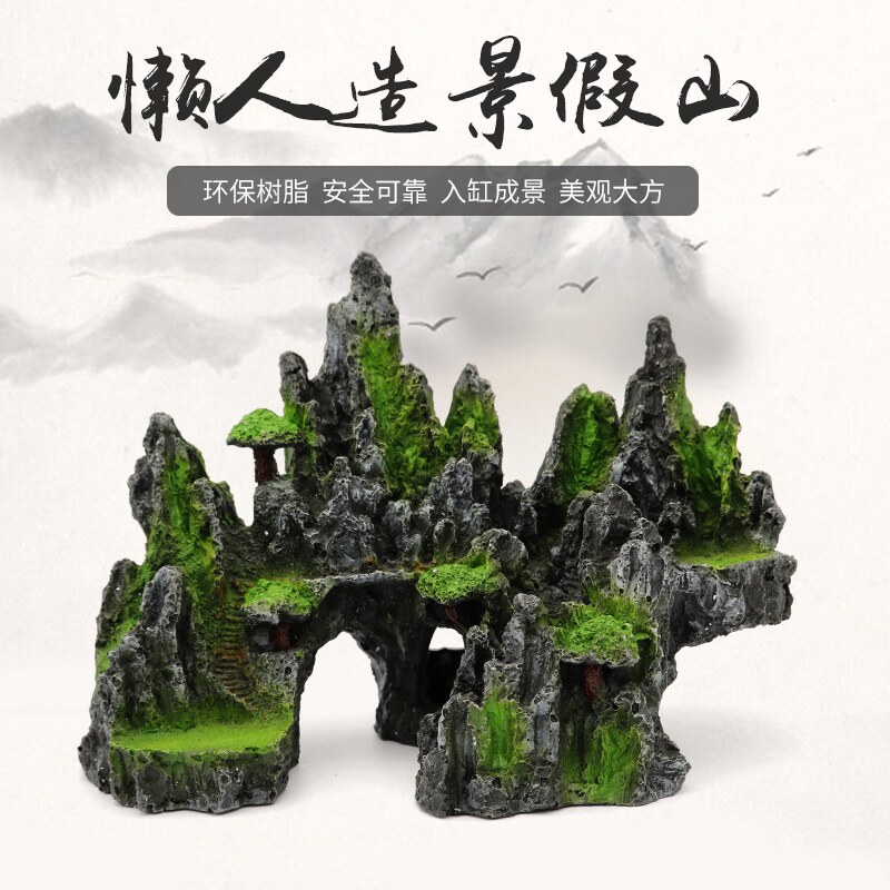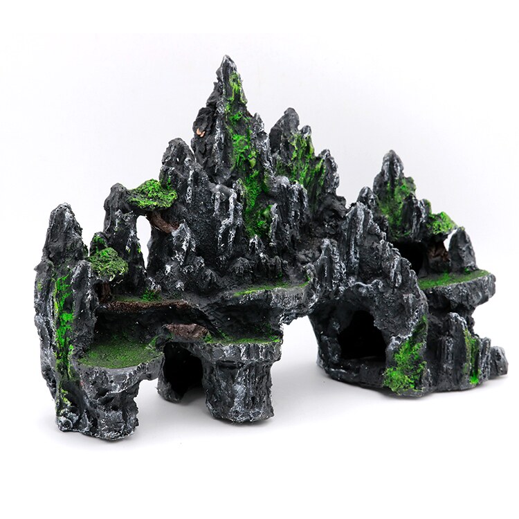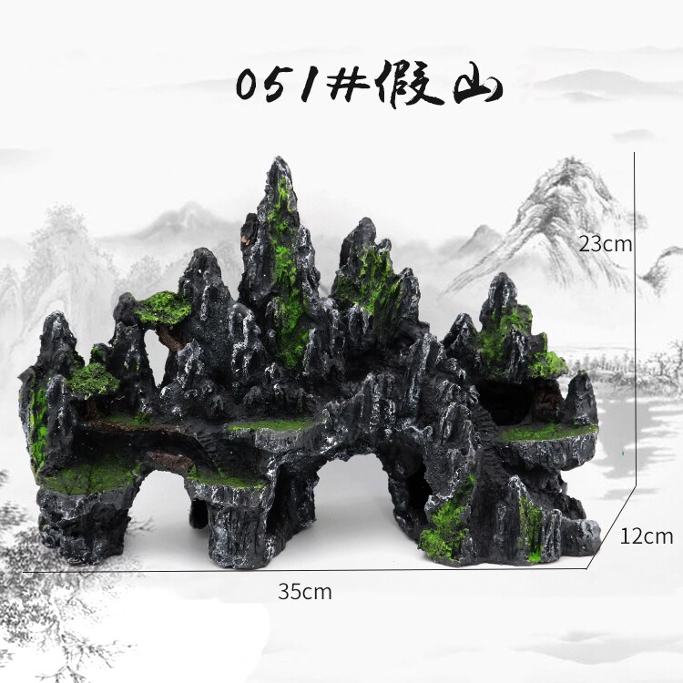 Fake mountain stone head building scenery flow sand turtle large fish tank decorated with water grass resin small swing piece shipwreck ornamental shrimp shelter from the house