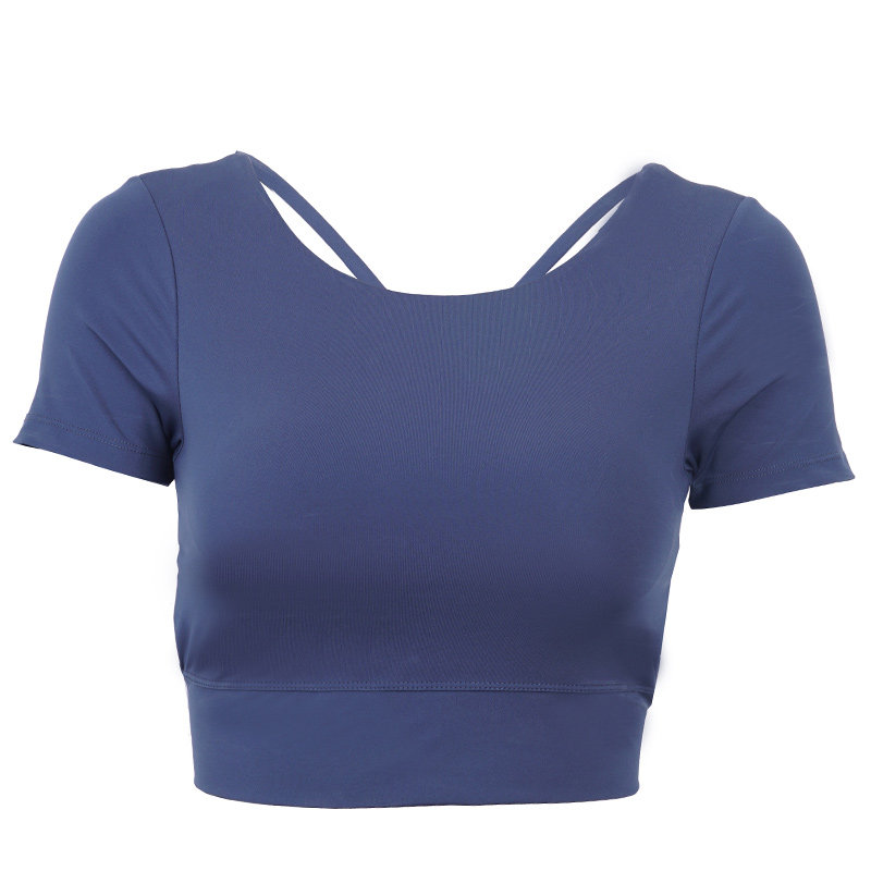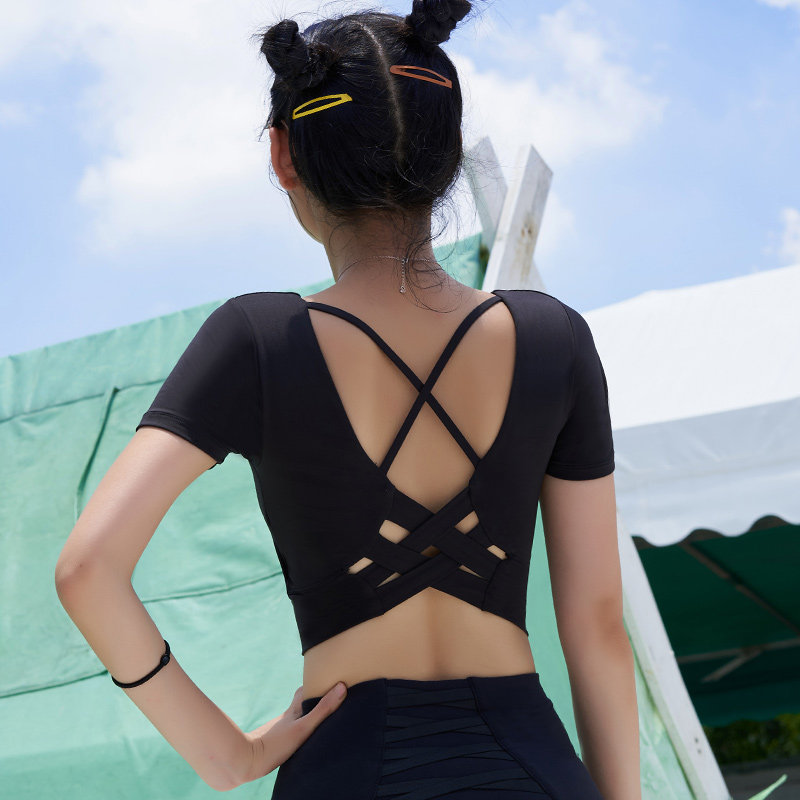 Thin belt beauty back short yoga suit women with chest pad tight sexy fitness suit Short sleeve quick-drying T-shirt sports top