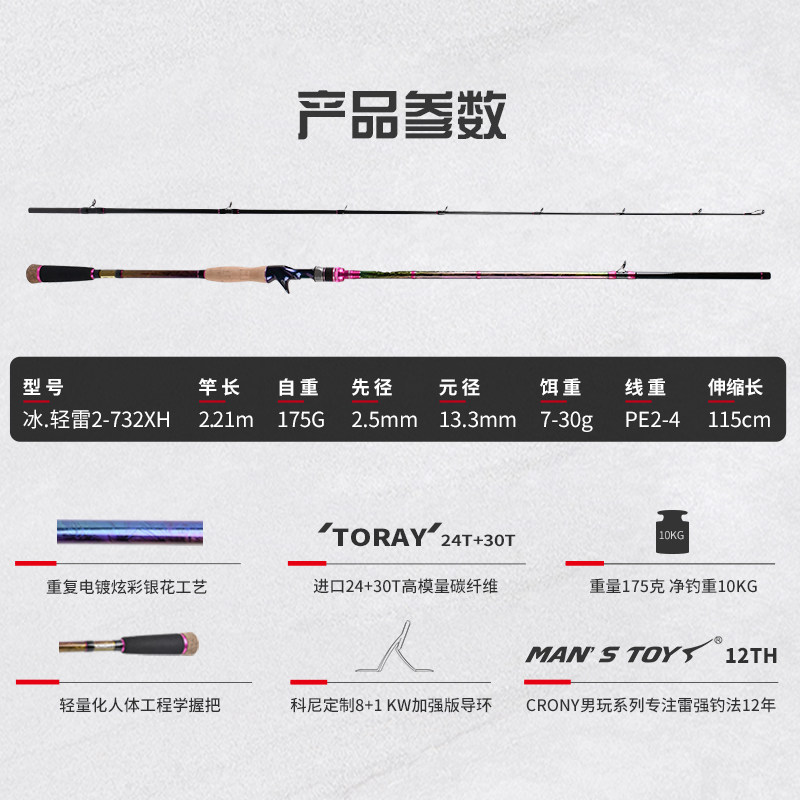 CRONY Kony road Apole new men's play ice light thunder 2nd generation XH ultra-hard tunes with light black fishing rod Ray strong pole